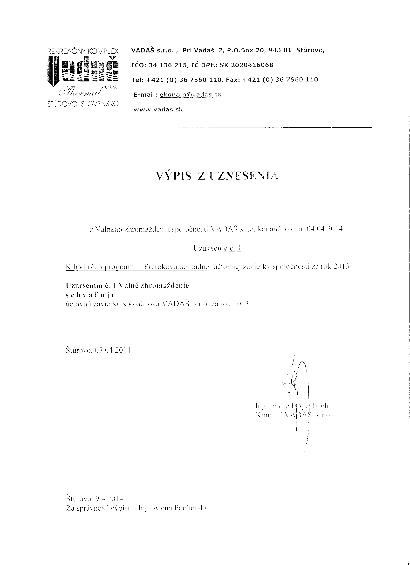 Oznámenie o schválení účtovnej závierky