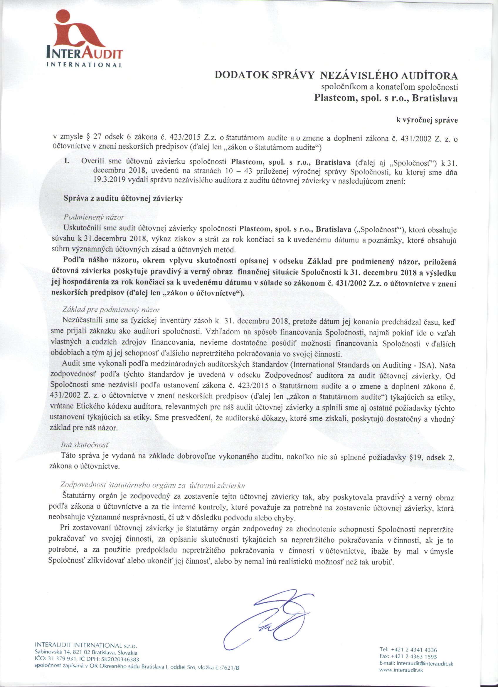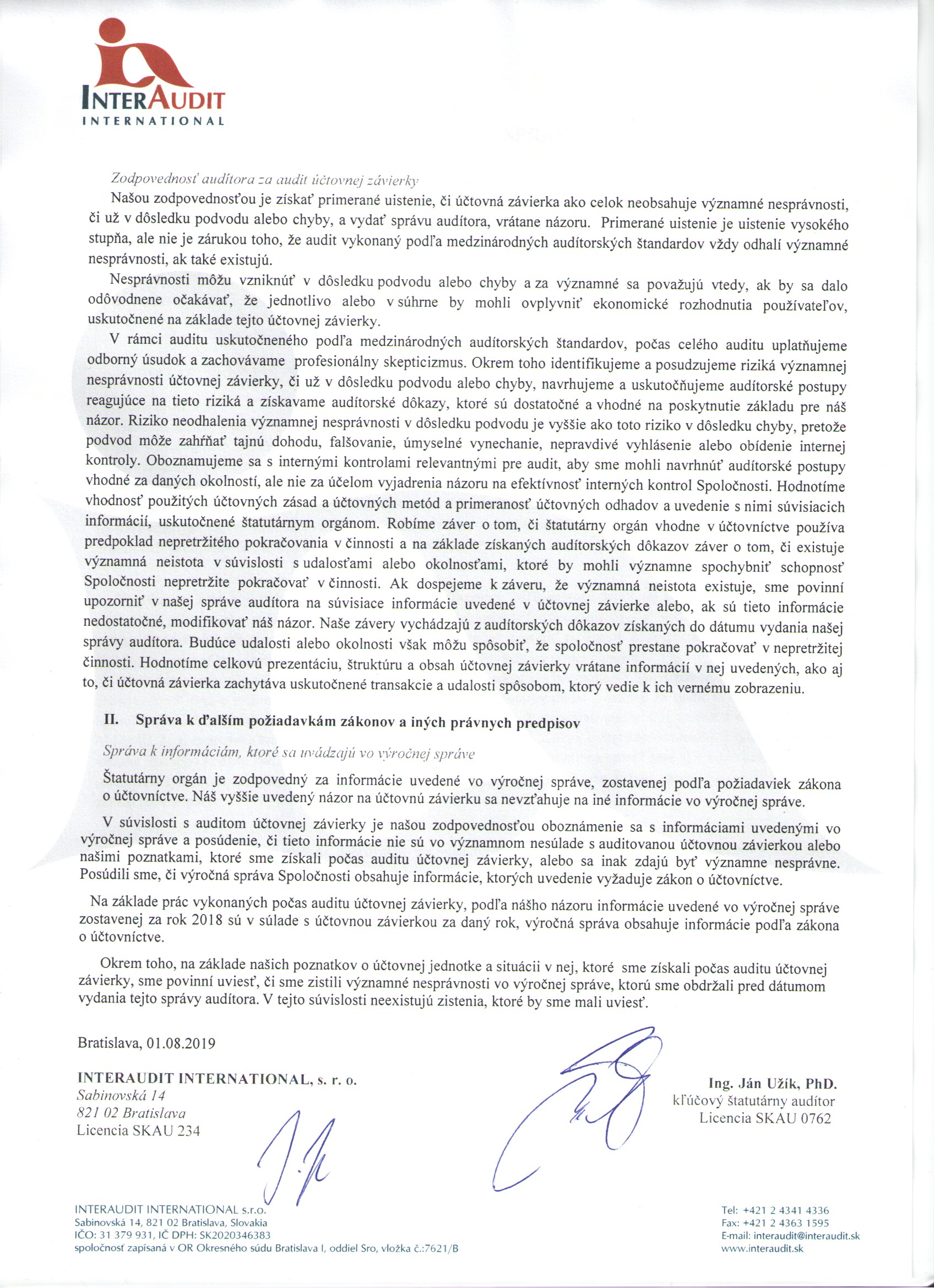 Správa audítora: Správa audítora