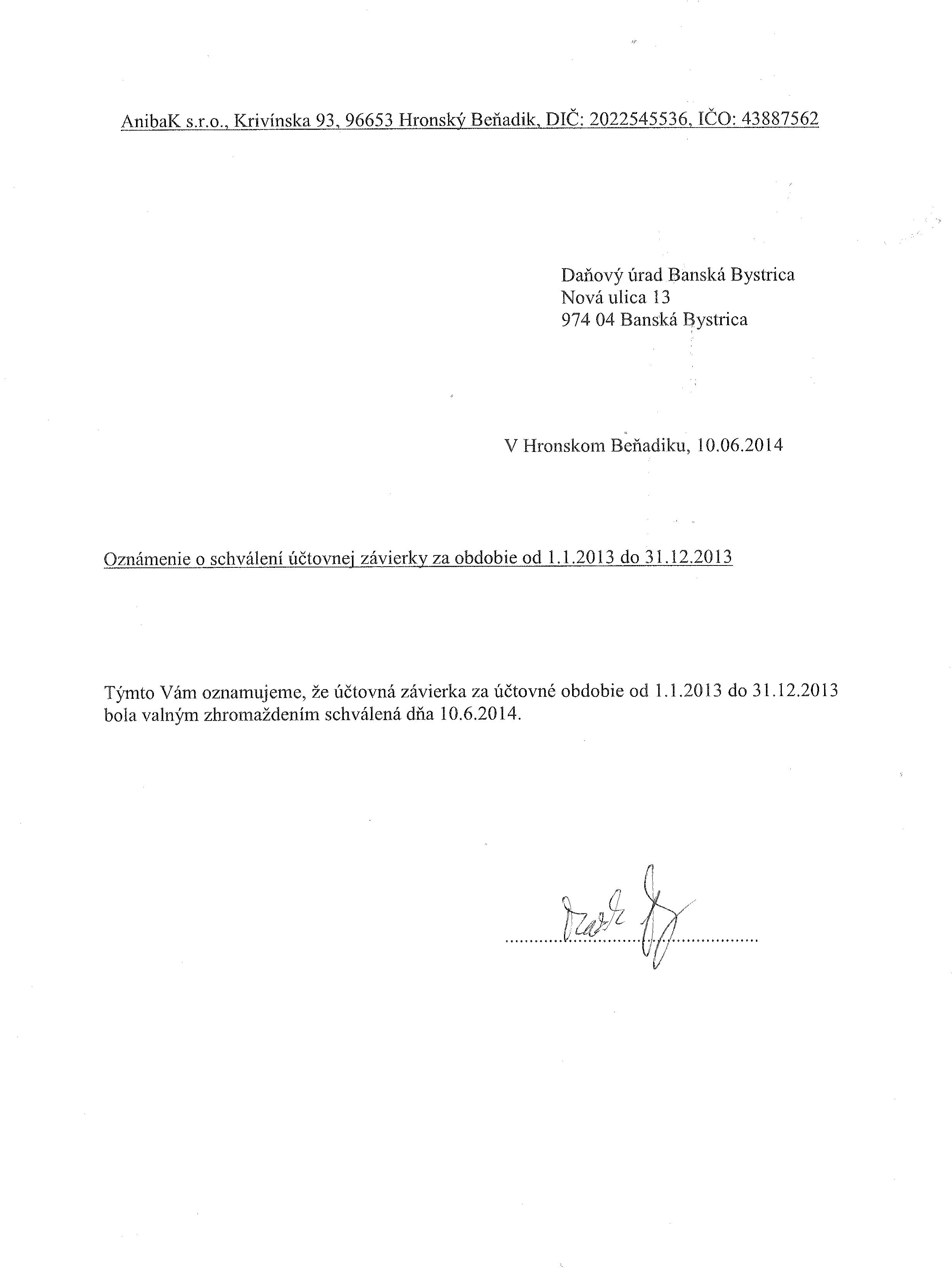 Oznámenie o schválení účtovnej závierky