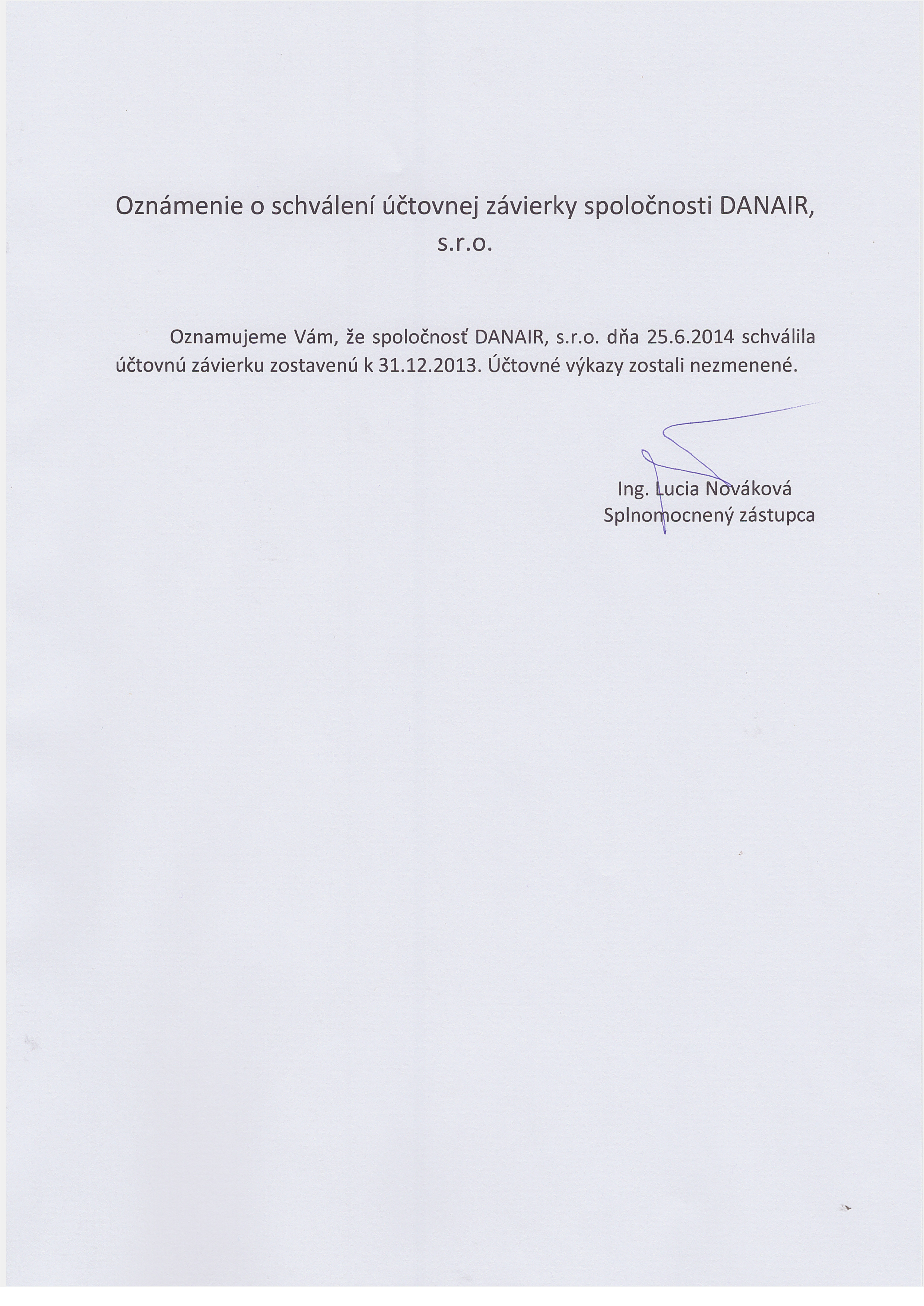 Oznámenie o schválení účtovnej závierky
