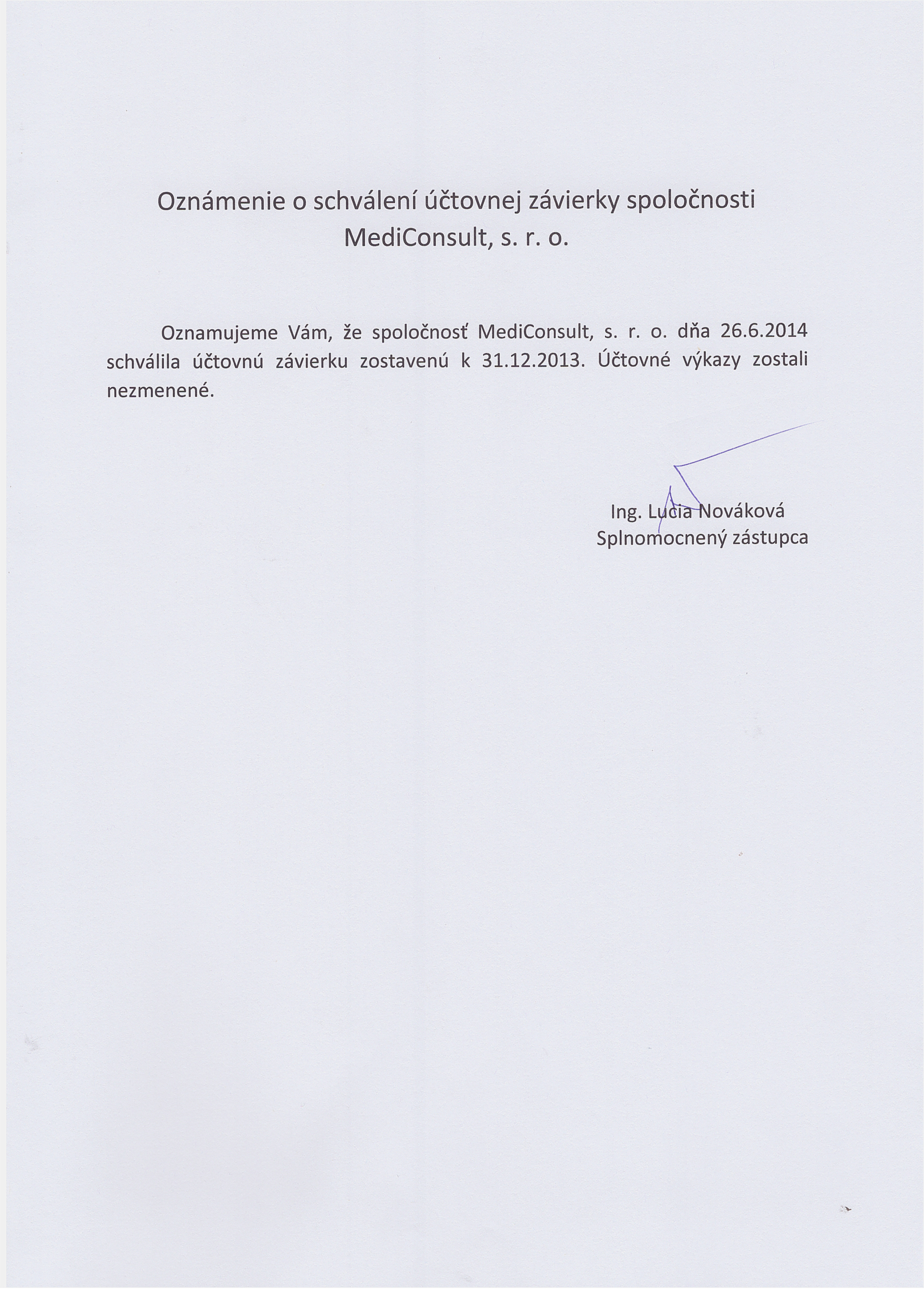 Oznámenie o schválení účtovnej závierky