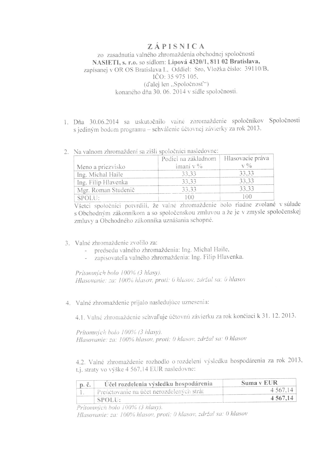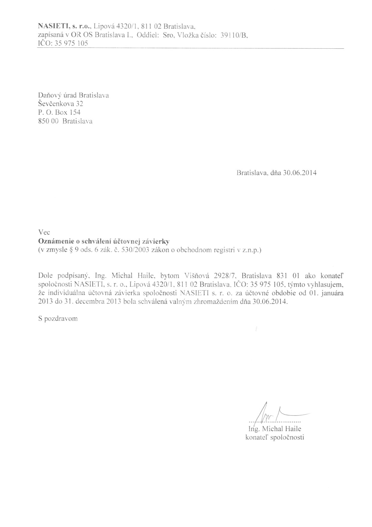 Oznámenie o schválení účtovnej závierky