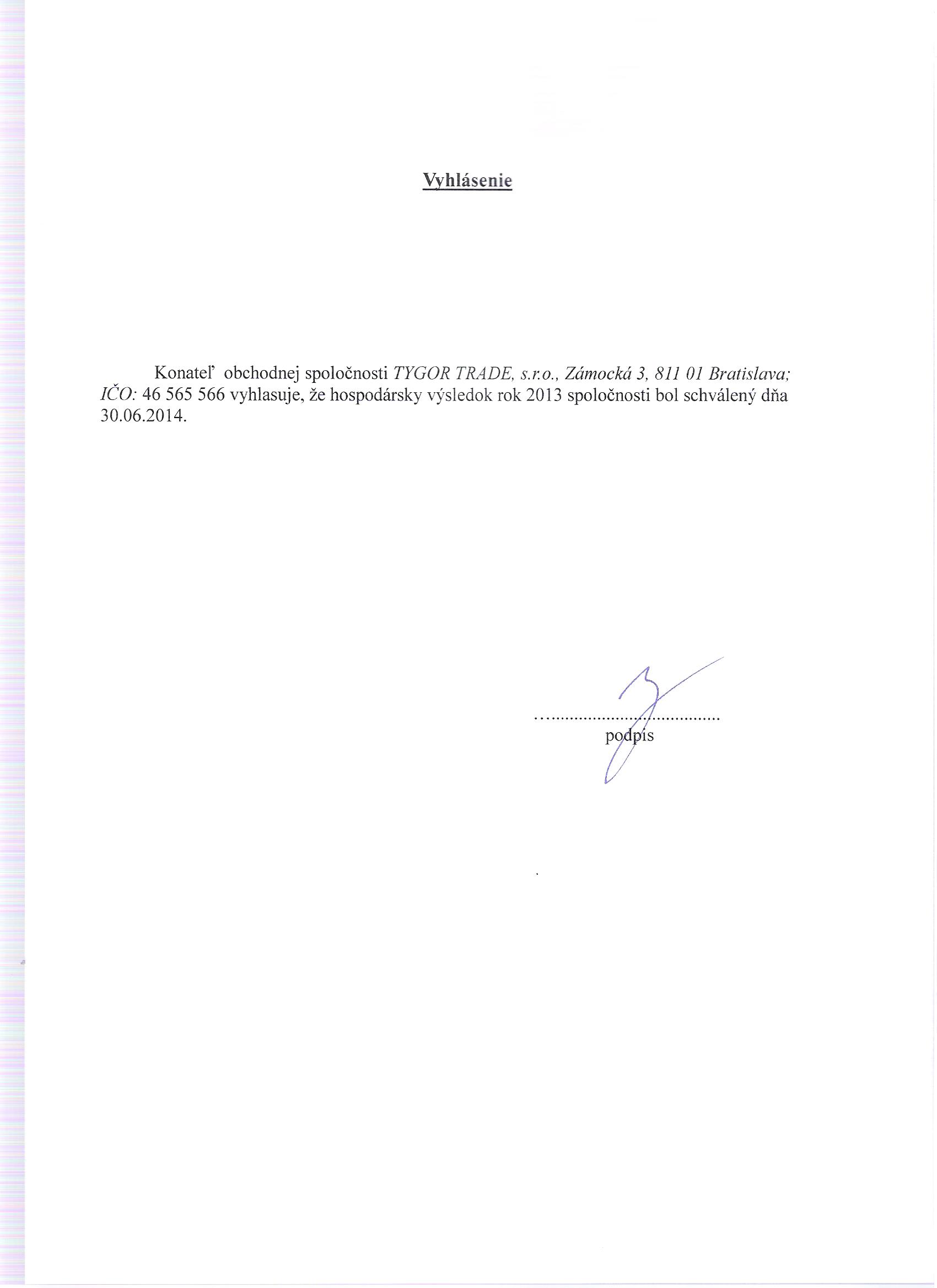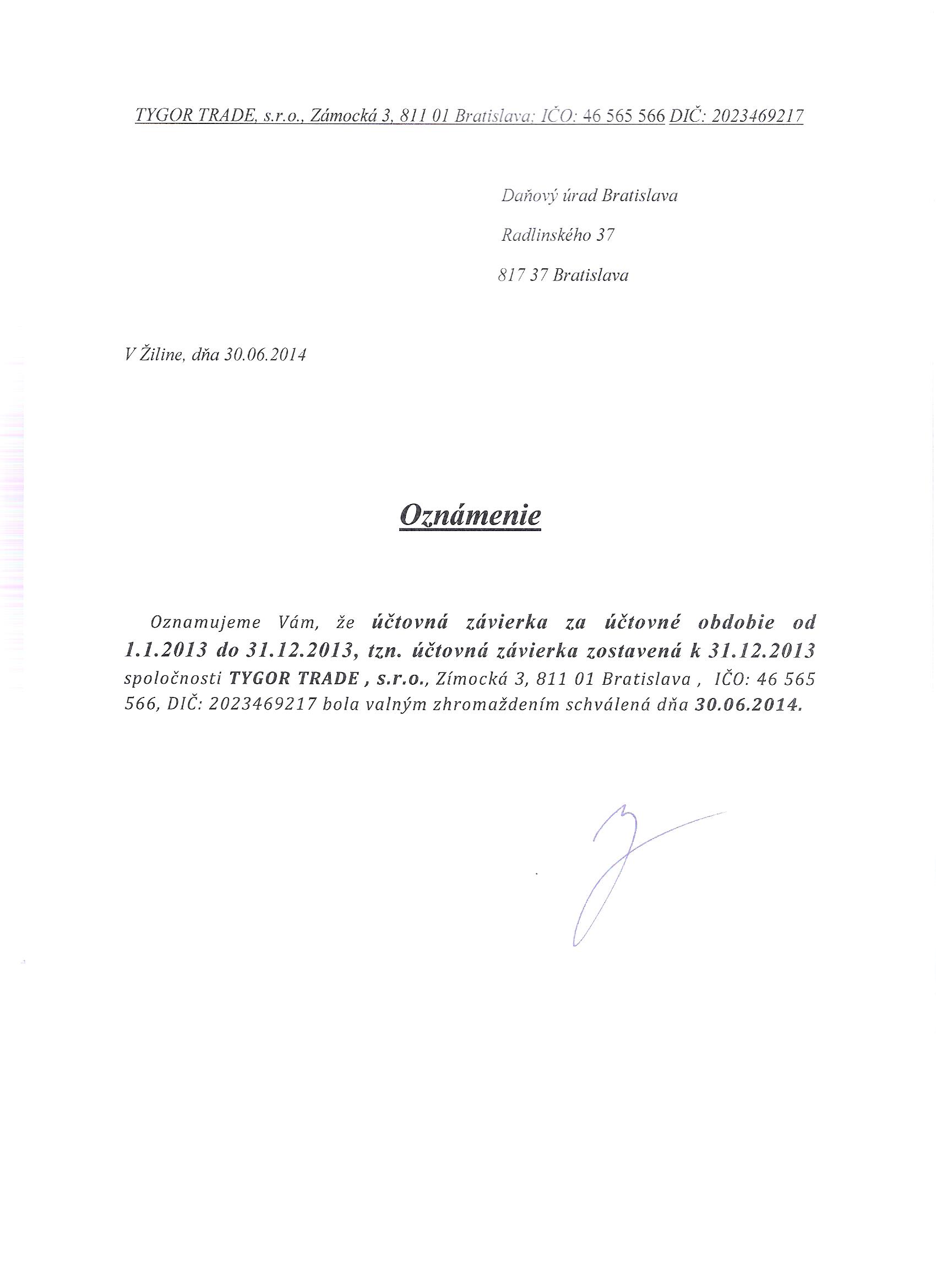 Oznámenie o schválení účtovnej závierky