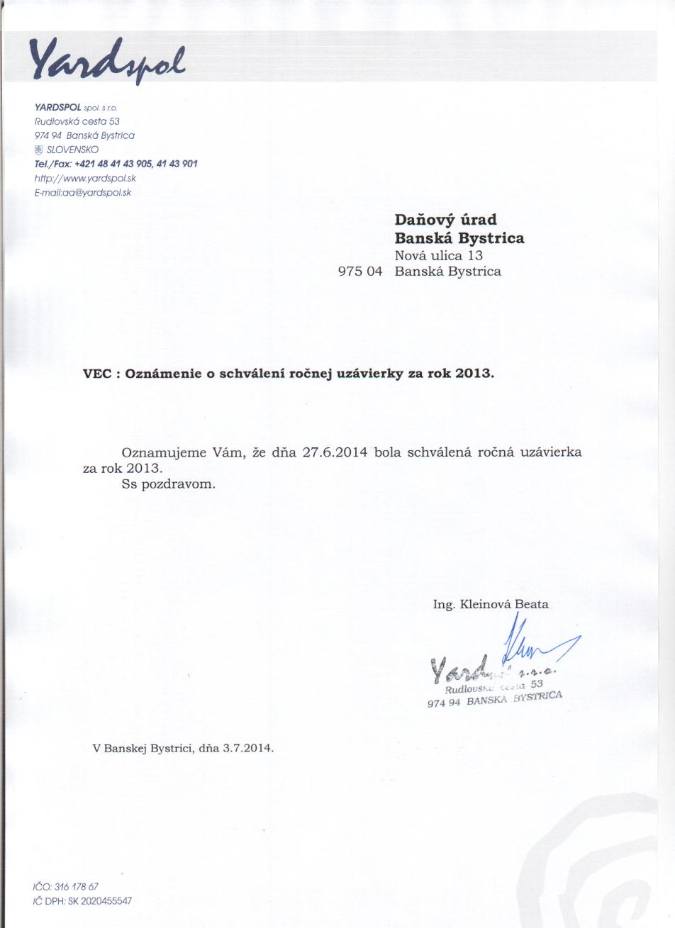 Oznámenie o schválení účtovnej závierky