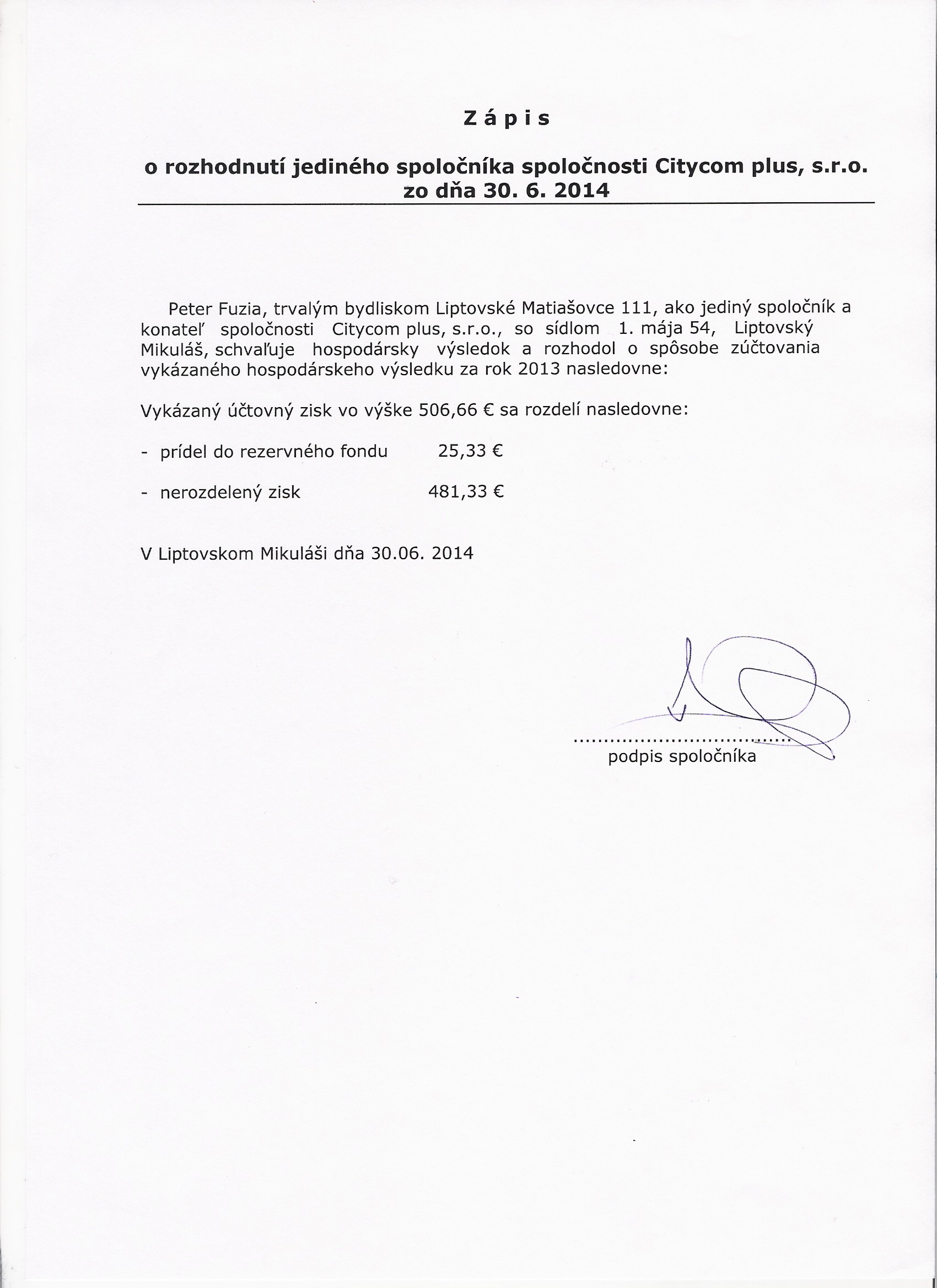 Oznámenie o schválení účtovnej závierky