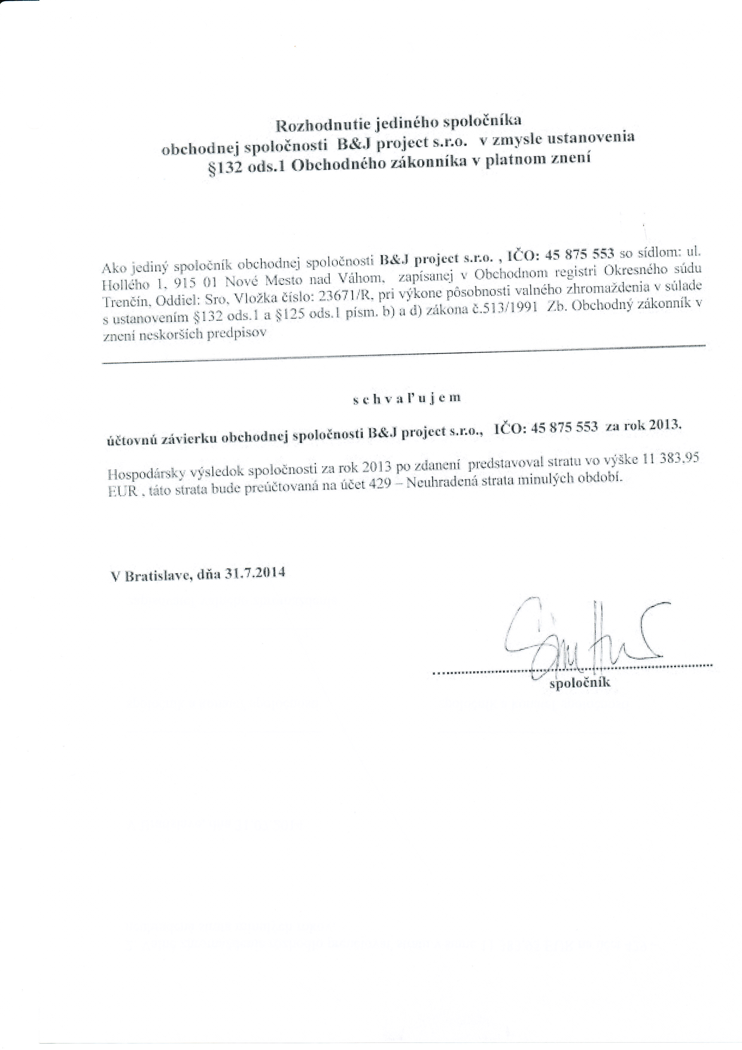 Oznámenie o schválení účtovnej závierky