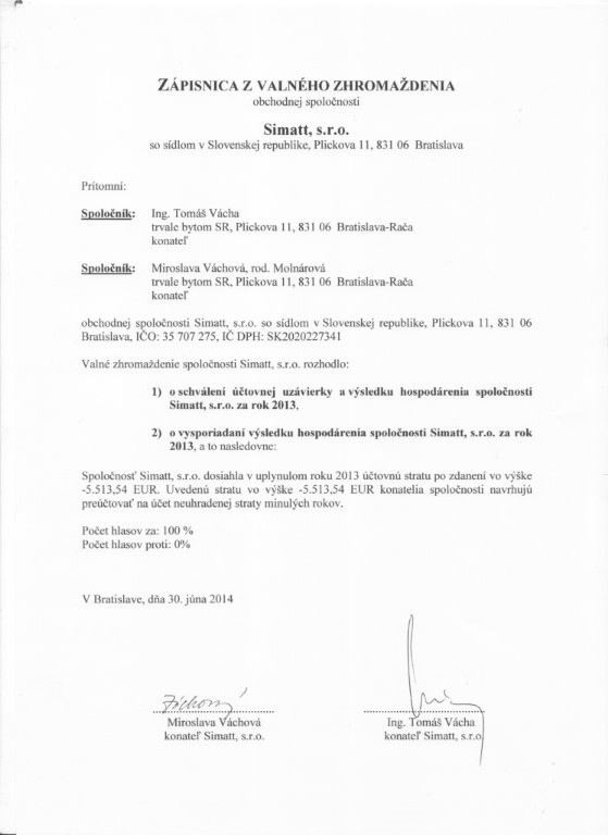 Oznámenie o schválení účtovnej závierky