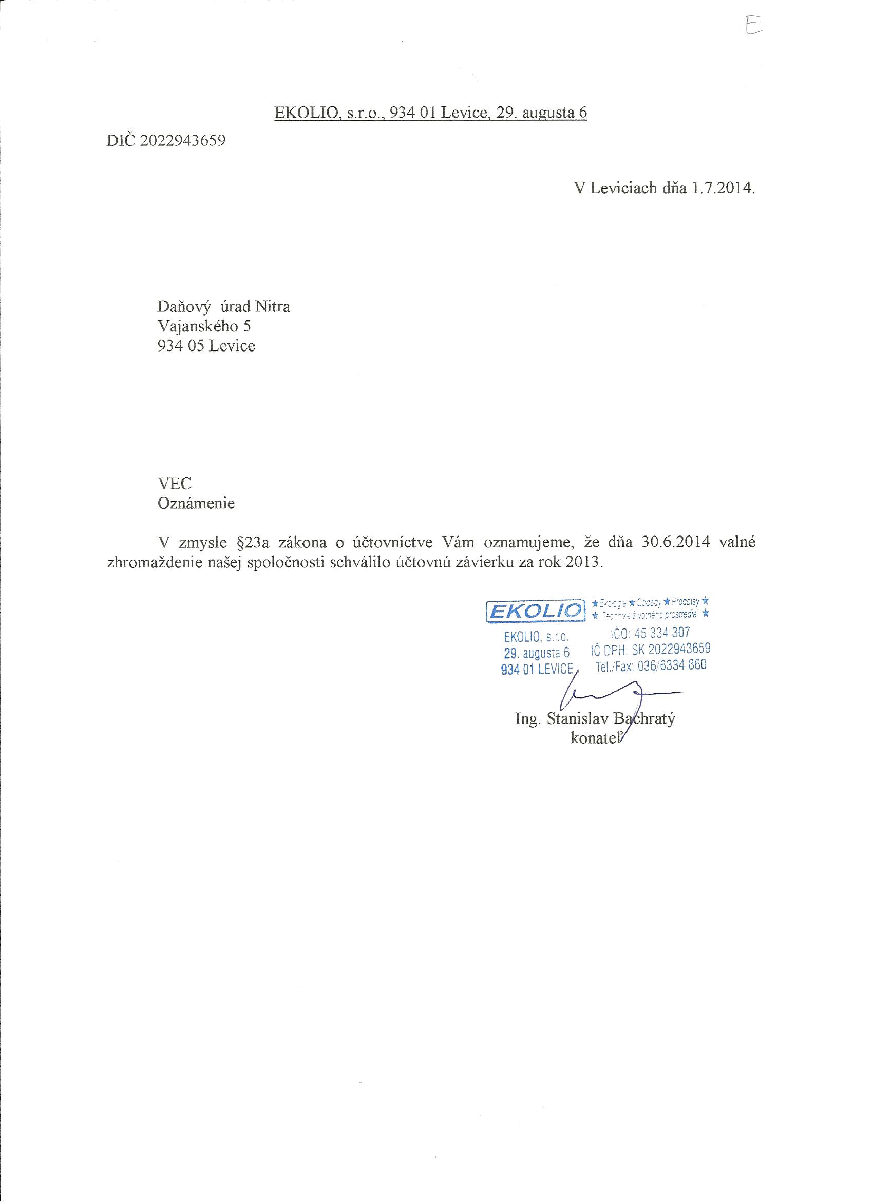 Oznámenie o schválení účtovnej závierky