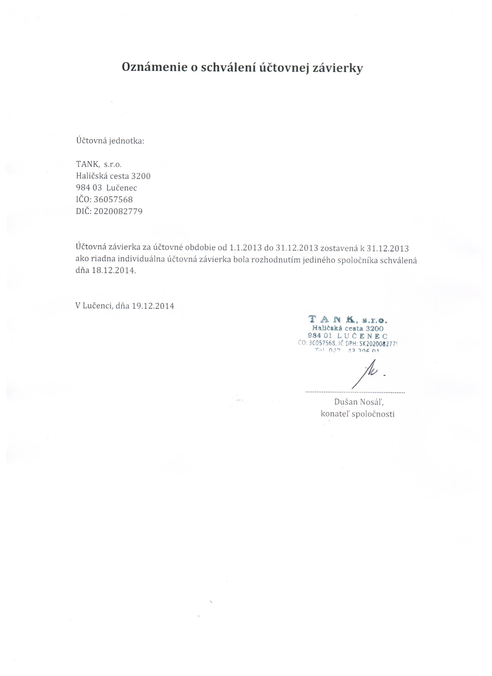 Oznámenie o schválení účtovnej závierky