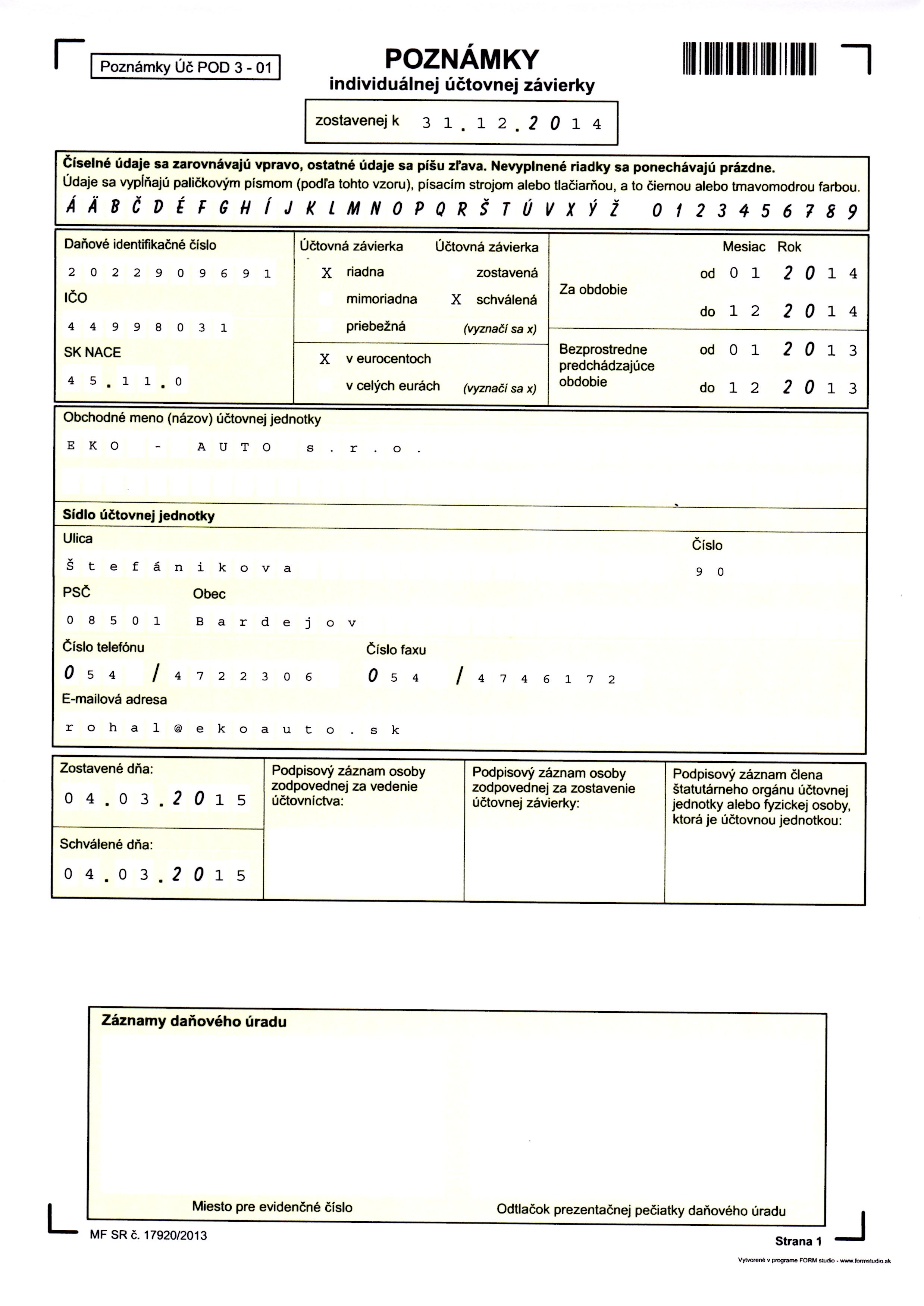 | B.V. | Finančné účty r. 72 + r. 73 | 71 | 1 483 | 1 483 | 465 | |