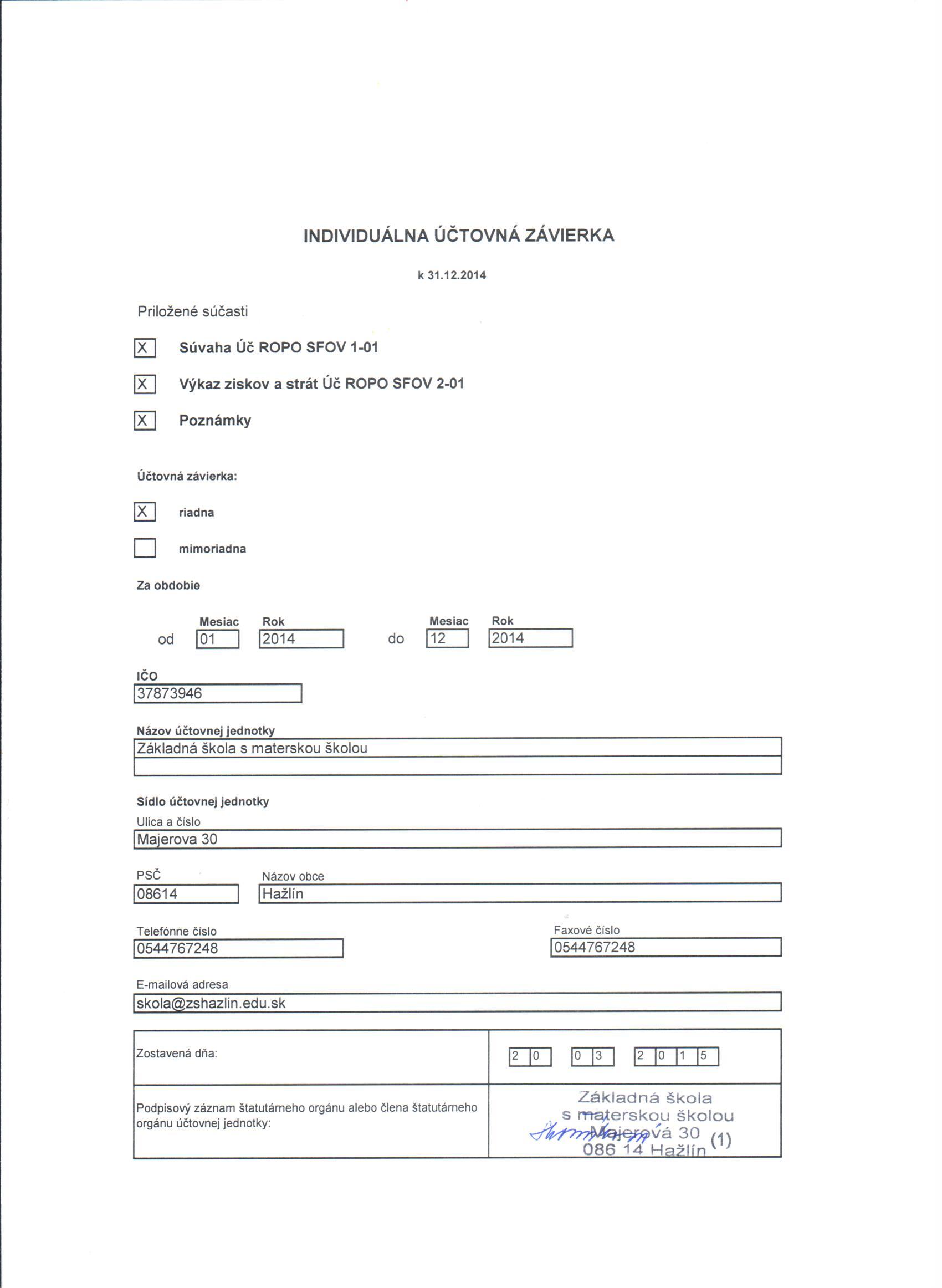 Titulná strana k 31.12.2014