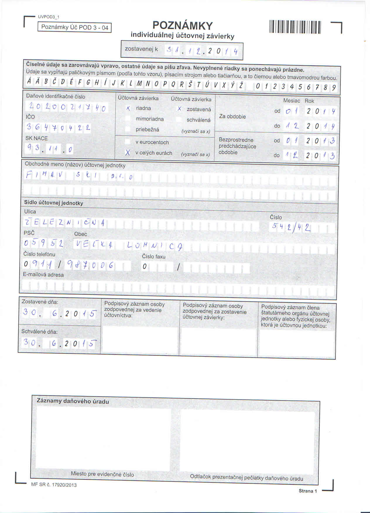 Daňové identifikačné číslo: