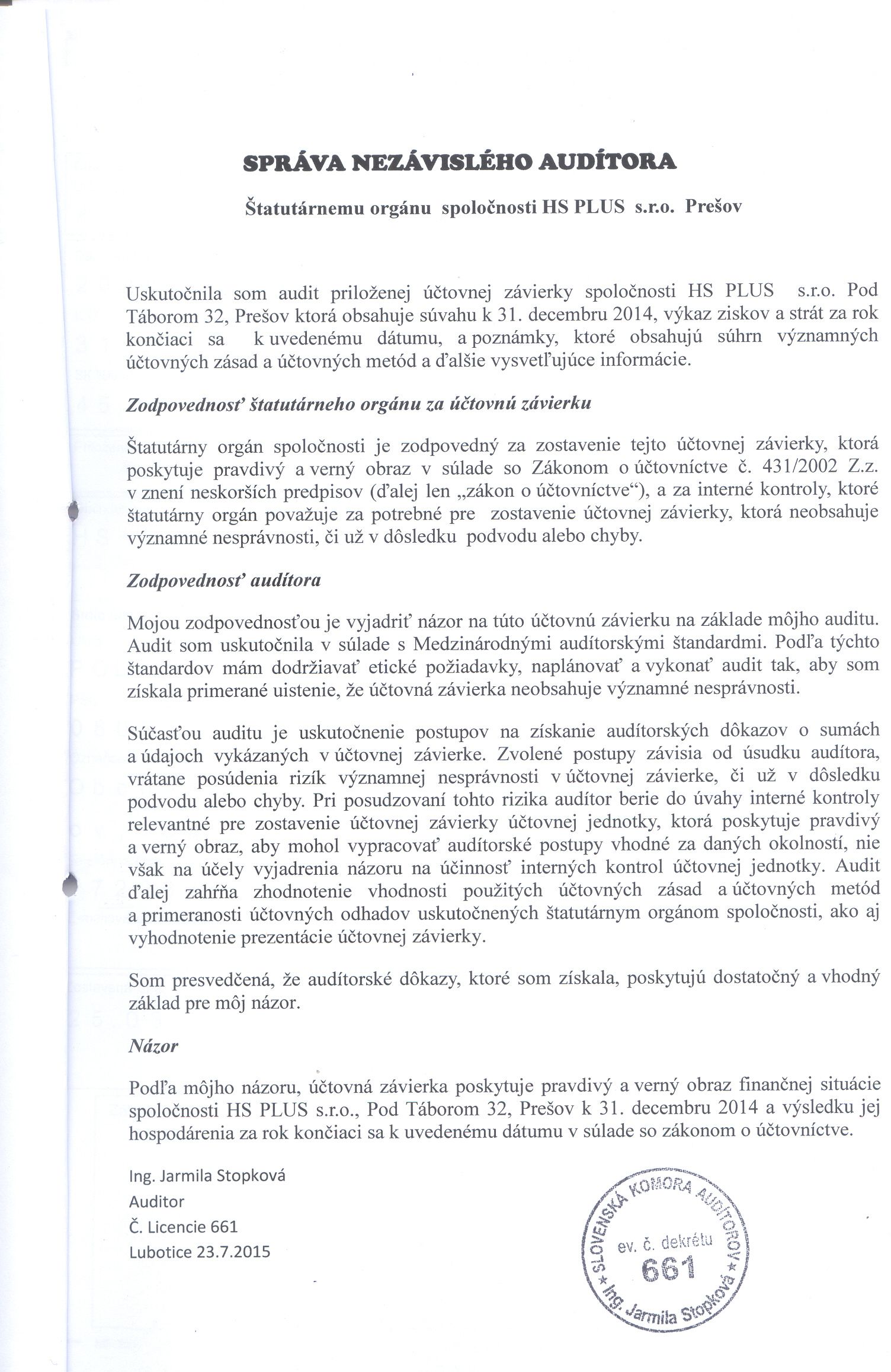 Správa audítora