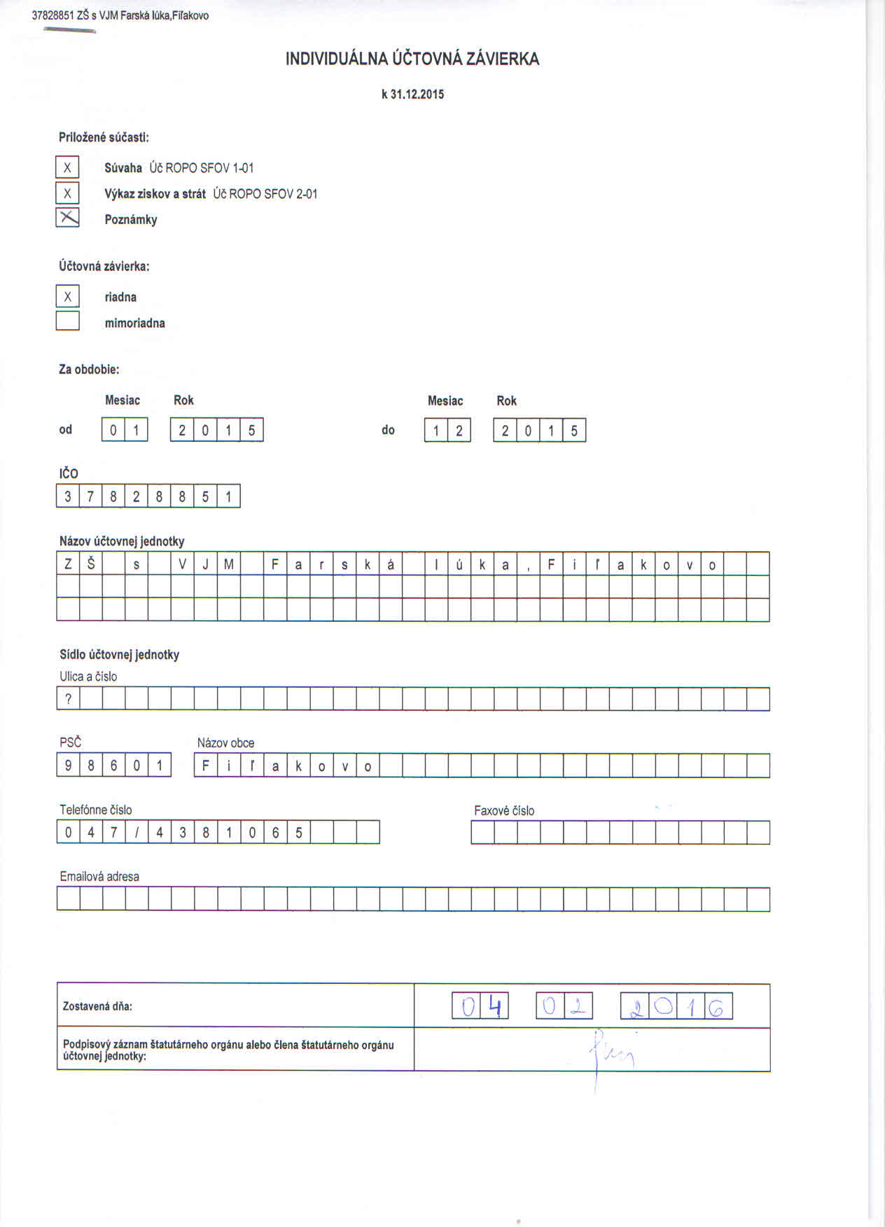 Názov účtovnej jednotky: