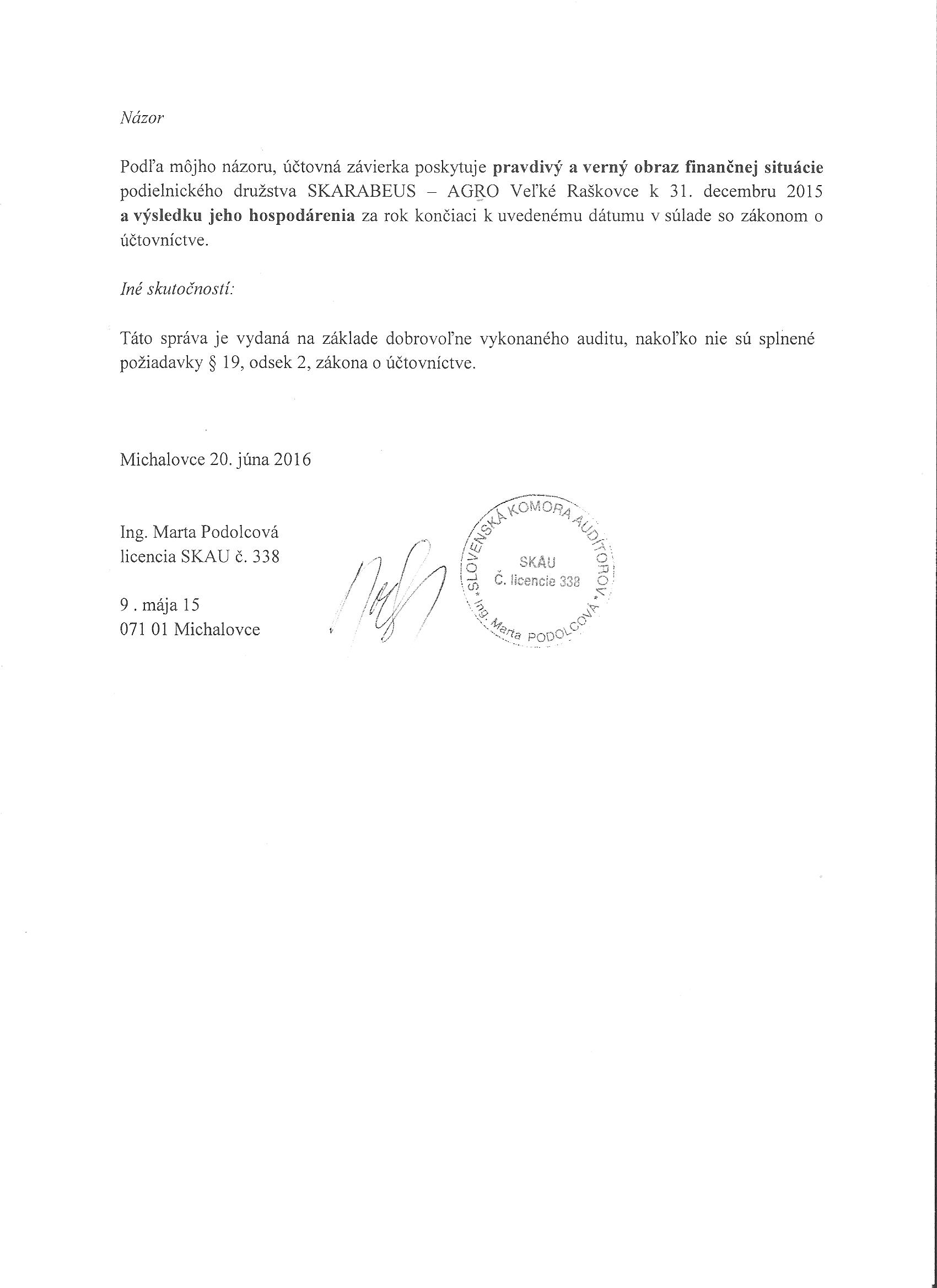 Podielnícke družstvo SKARABEUS-AGRO Veľké Raškovce