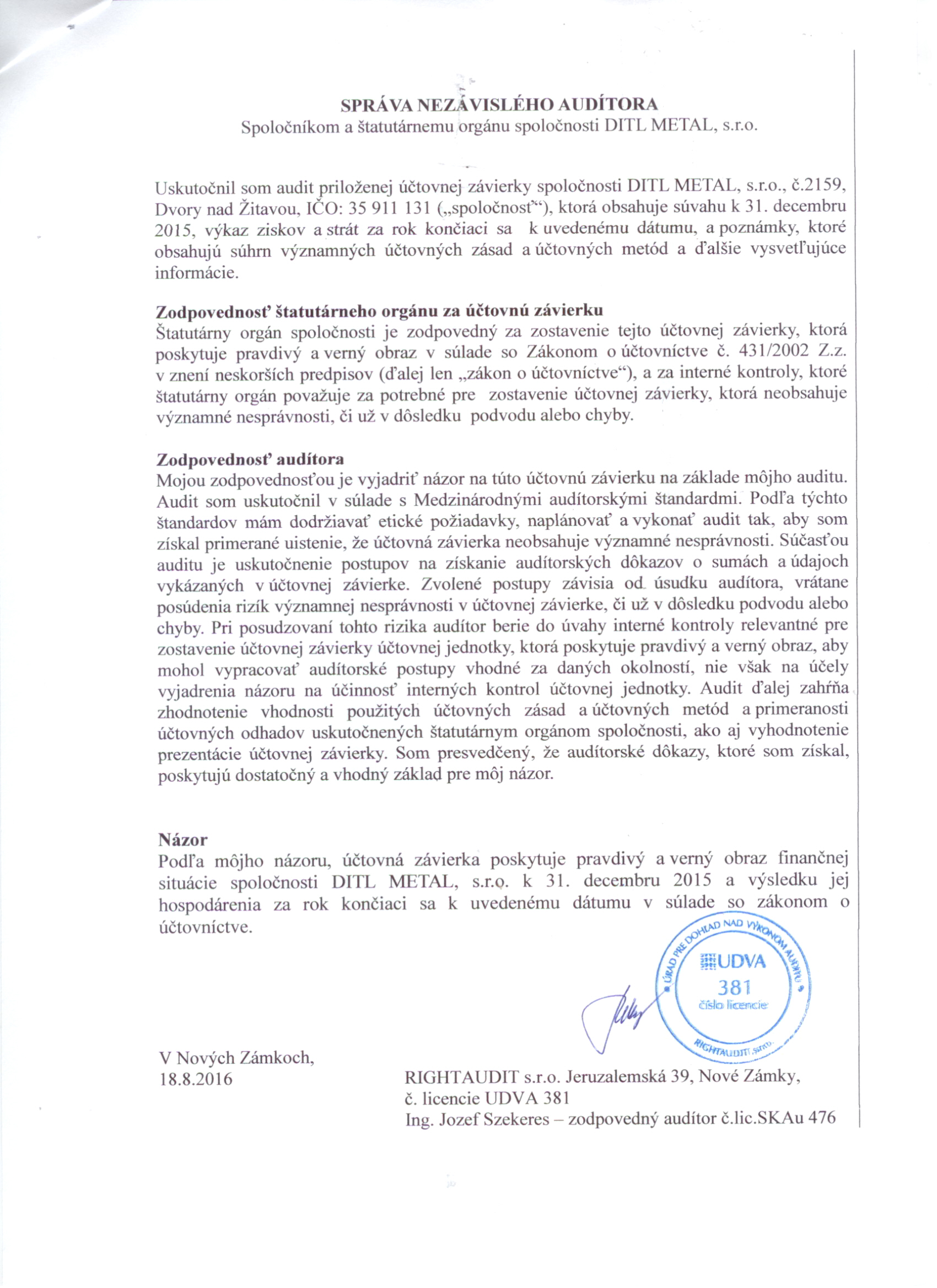 Správa audítora