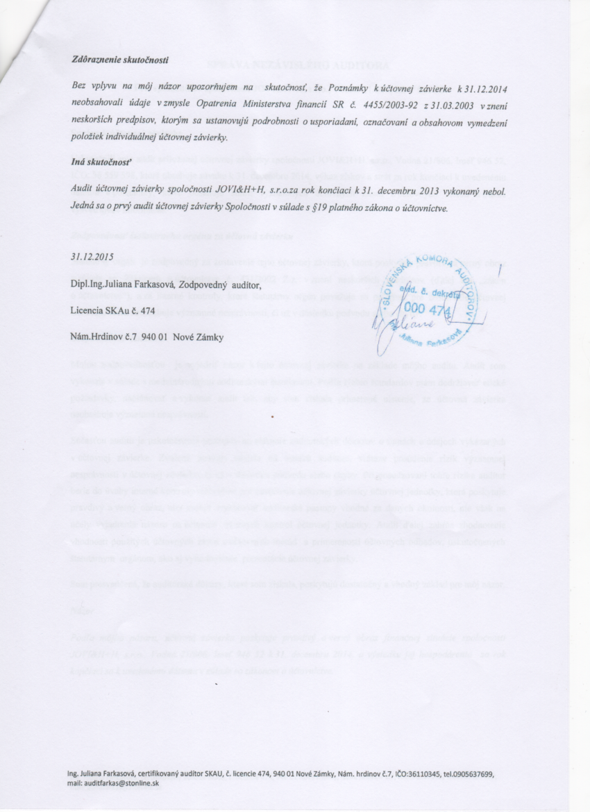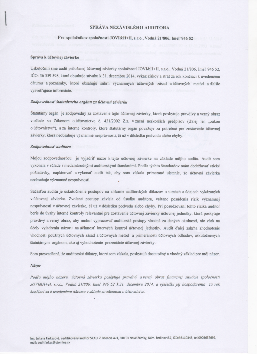 Správa audítora k 31.12.2014