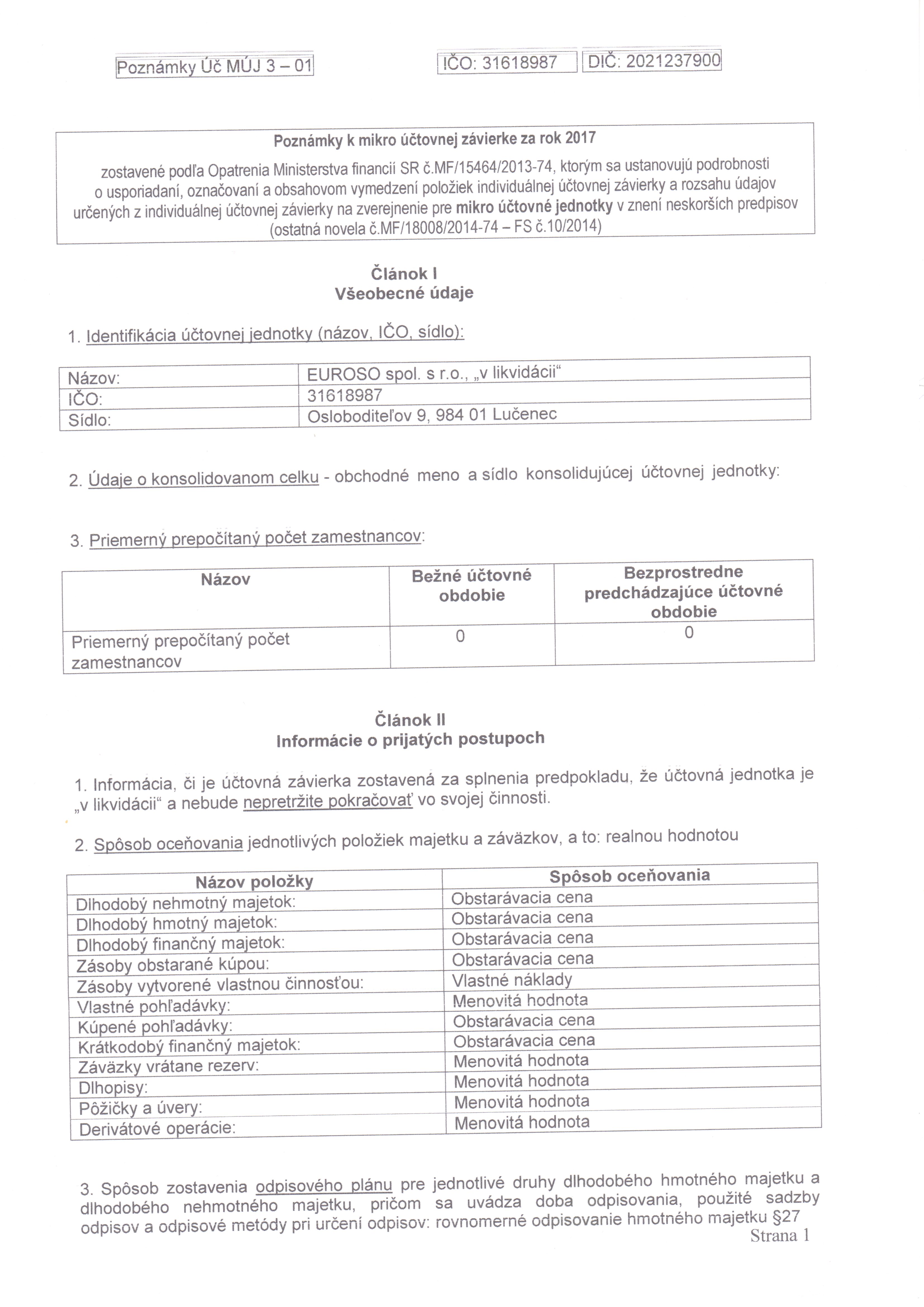 EUROSO, spol. s r.o. %0Cv likvidácii%0C