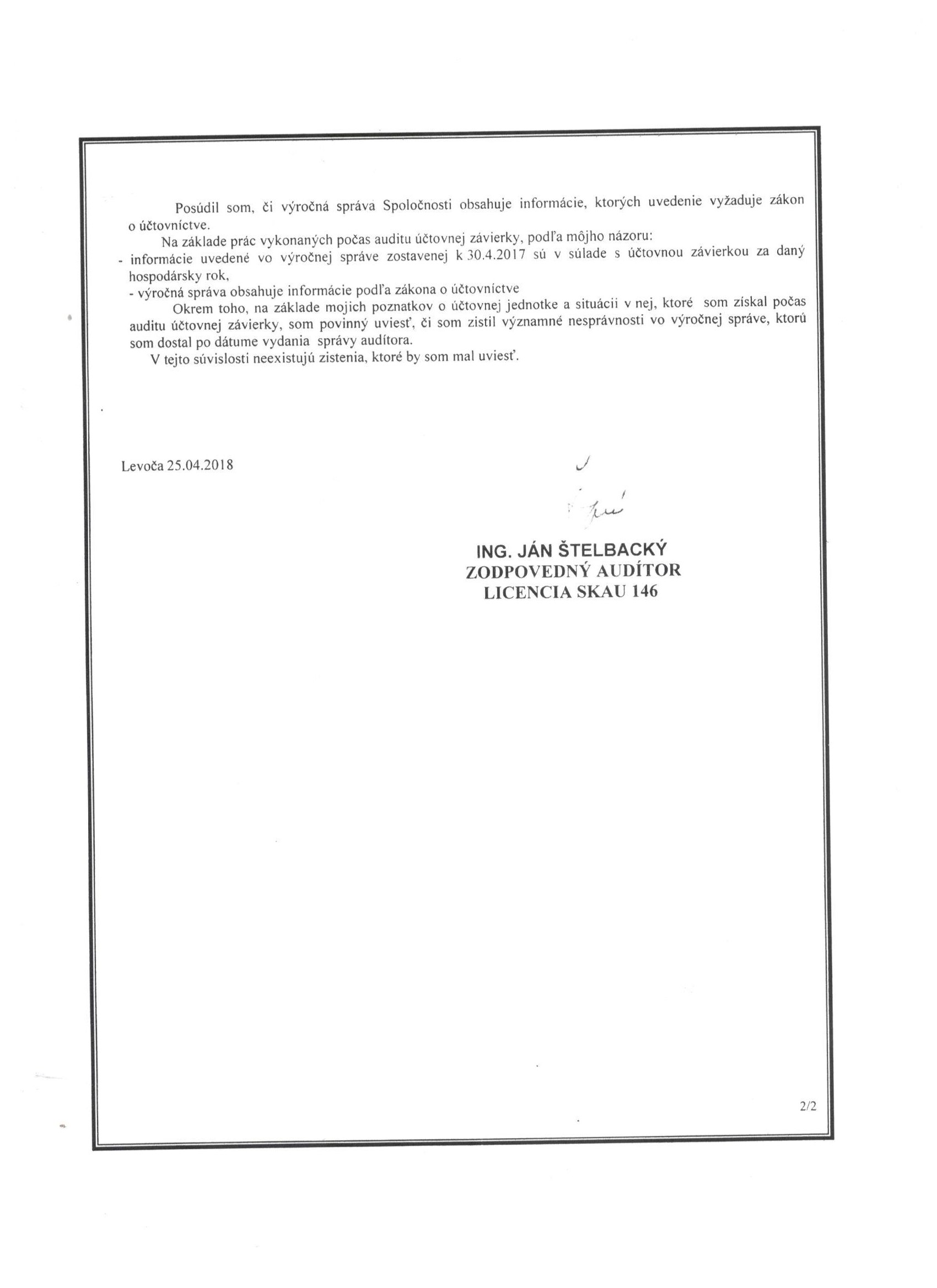 Správa audítora k 30.04.2017