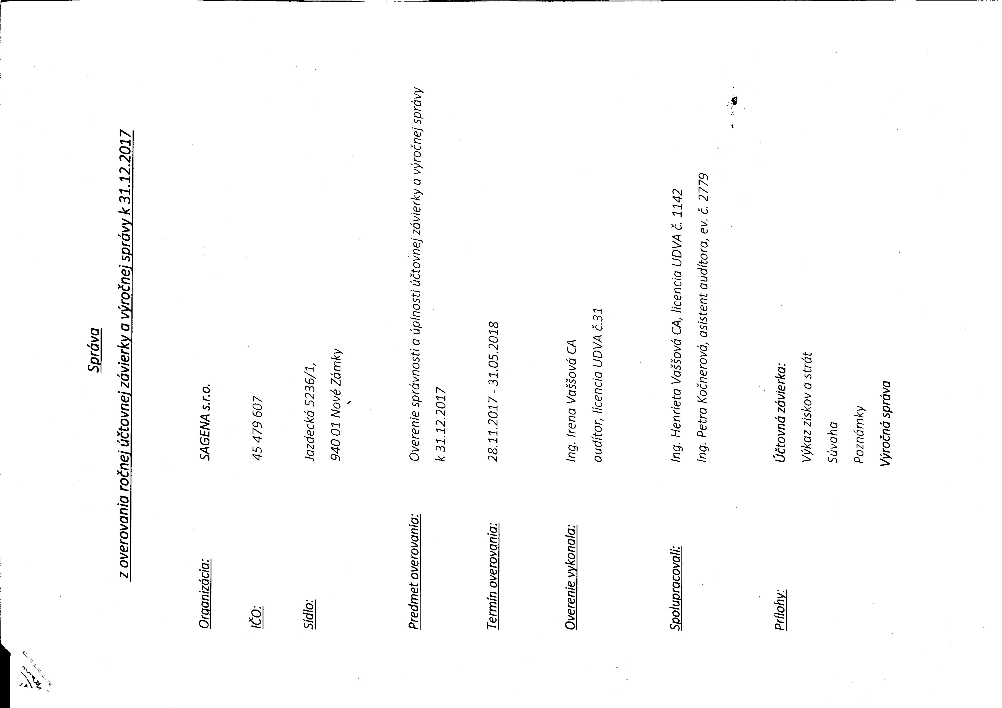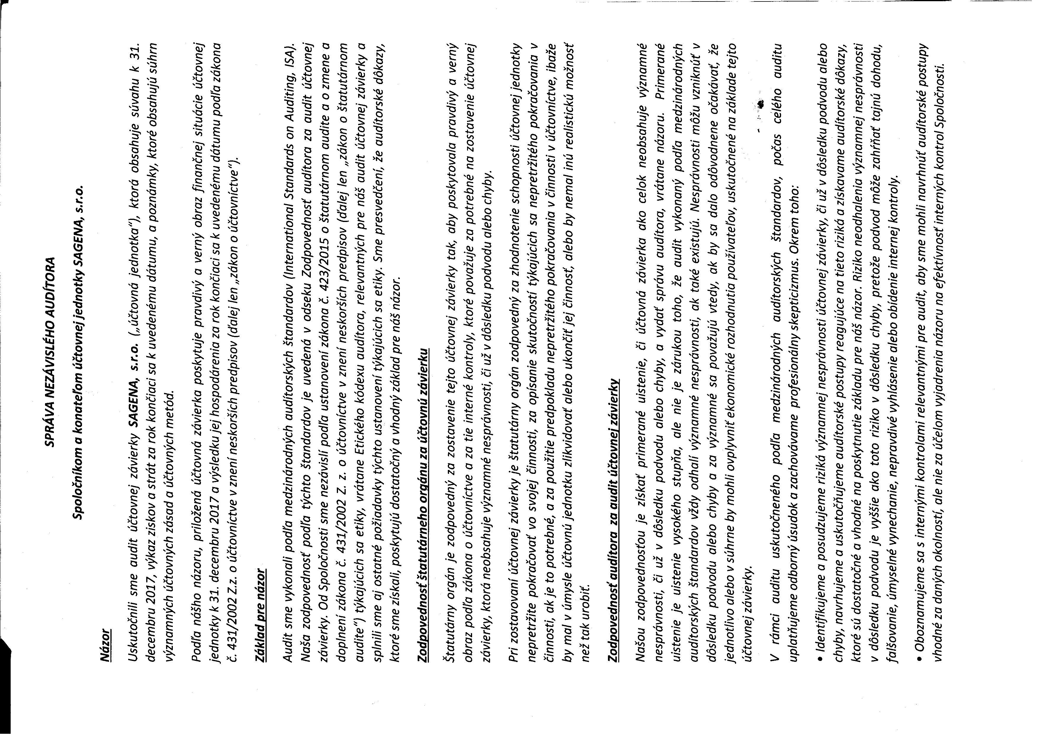 Správa audítora k 31.12.2017