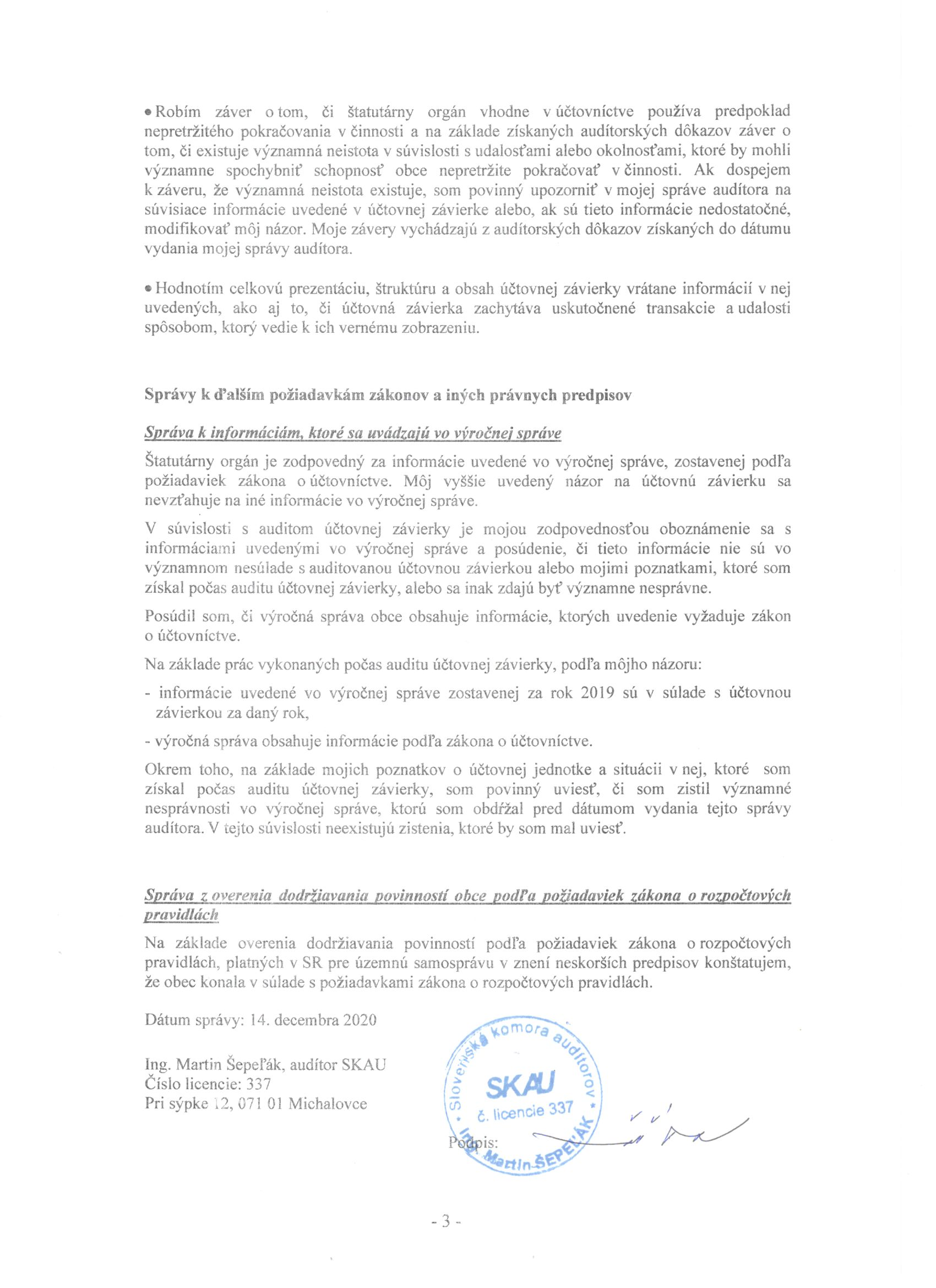 Správa audítora k 31.12.2019