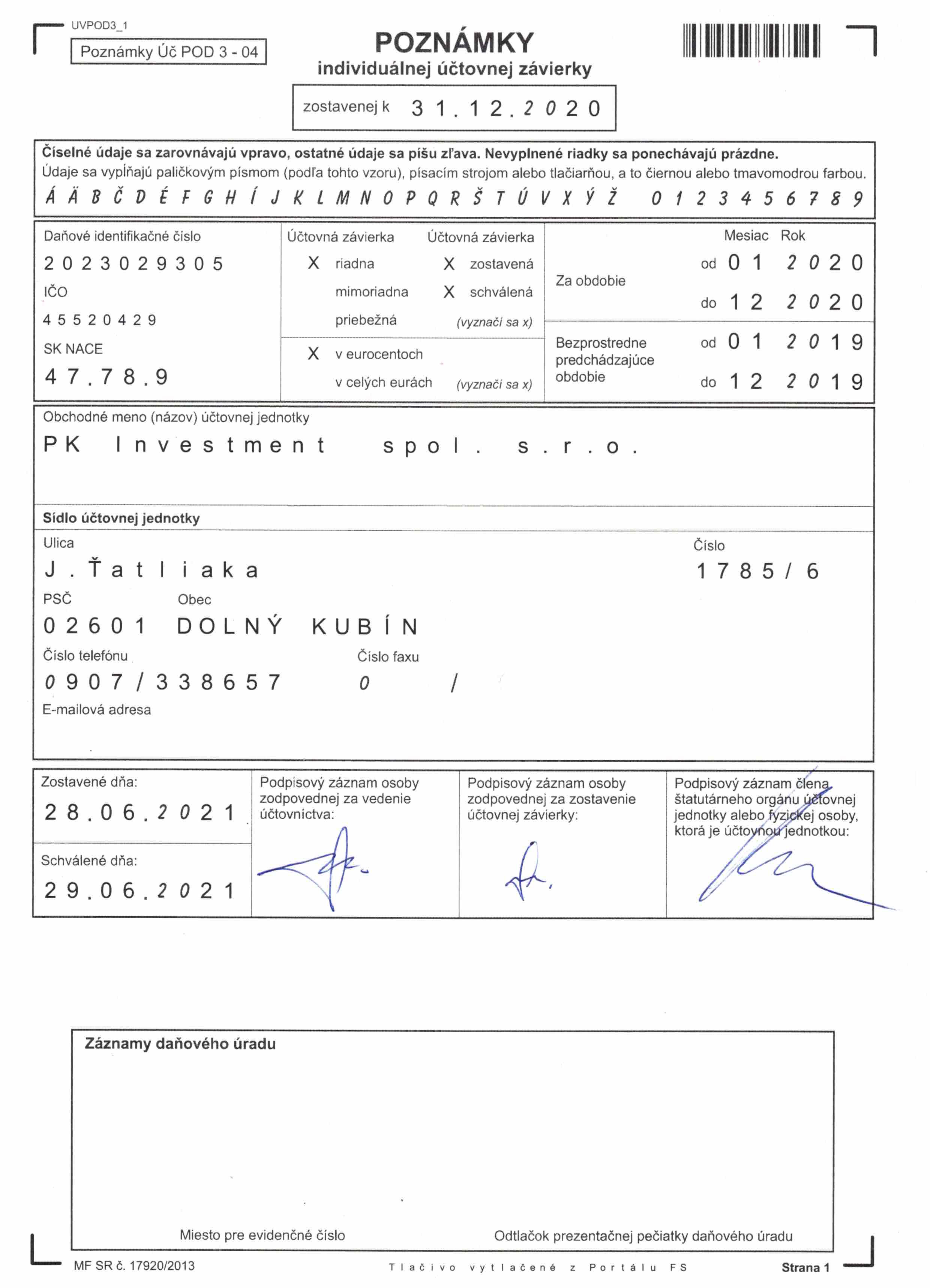 Výpis z Obchodného registra OS Žilina ,Oddiel: Sro Vložka číslo:52826/L