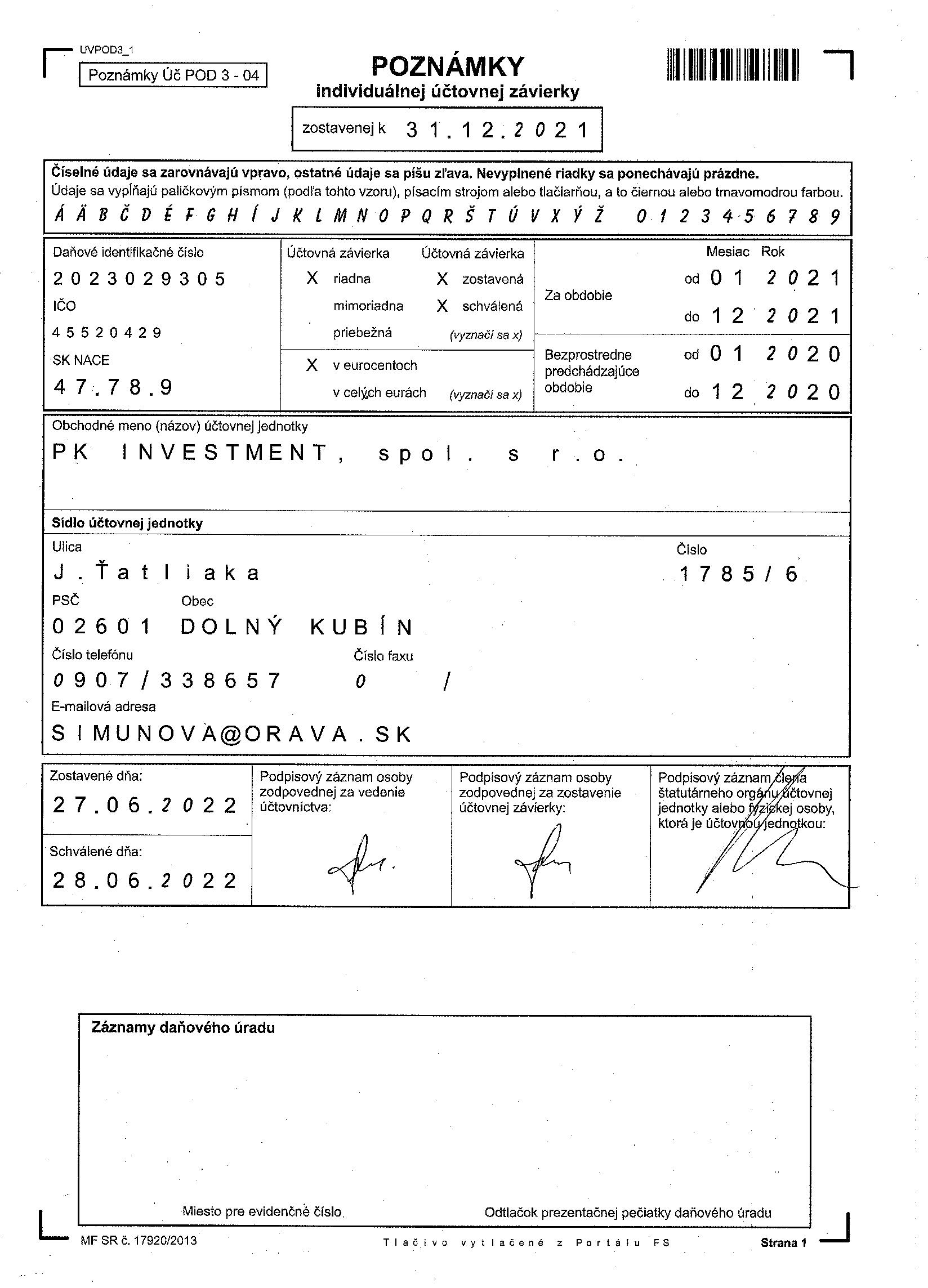 Výpis z OR Okresného súdu Žilina,Oddi el: Sro Vložka číslo:52826/L