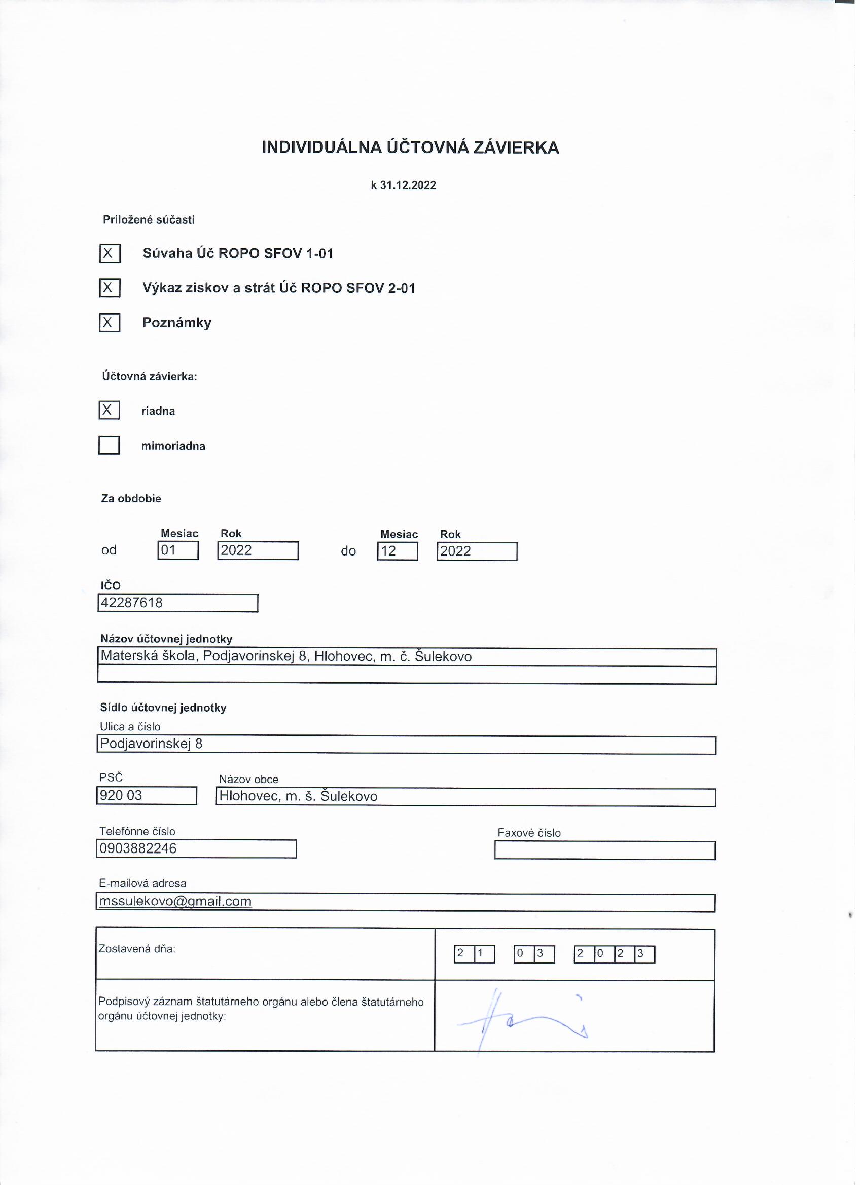 Názov účtovnej jednotky:
