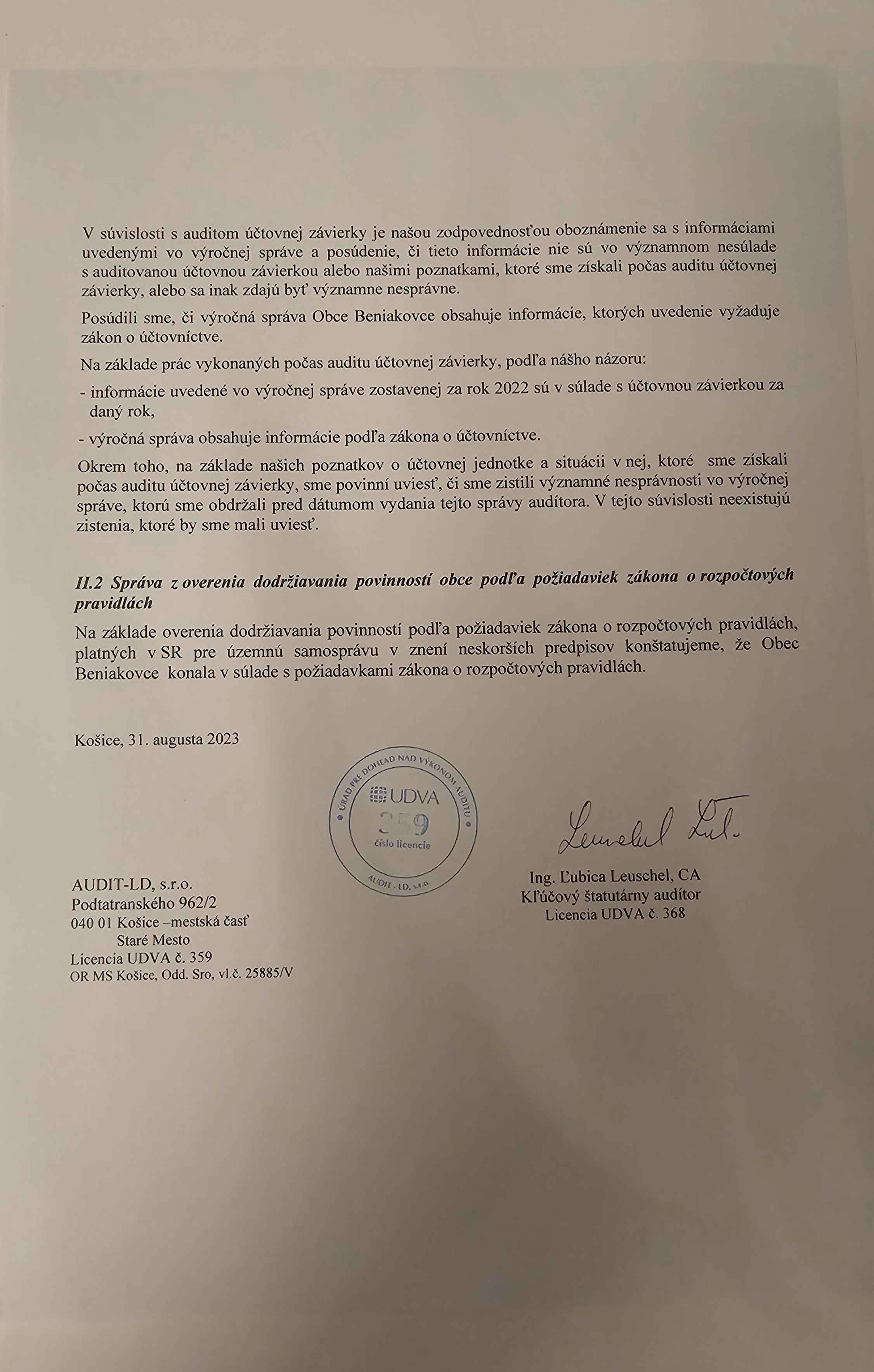 Správa audítora